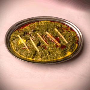 Saag Paneer: Paneer cubes cooked in a creamy spinach gravy with a mix of spices.